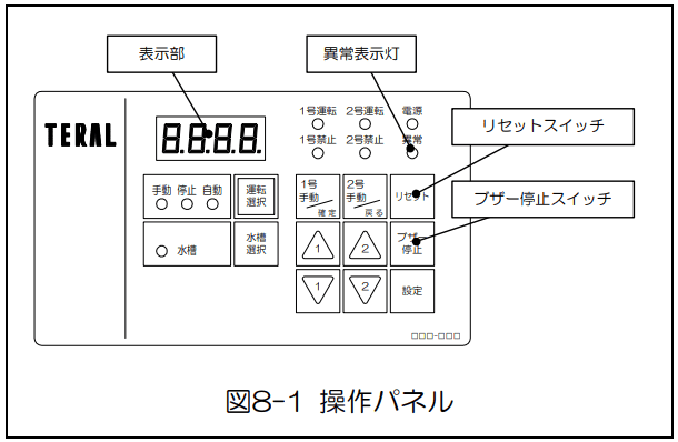 テラルポンプでは、異常が発生するとブザーや表示灯により警報を知らせます。