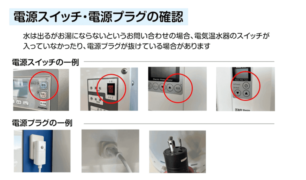 日本イトミック公式では、お湯が出ない場合の対応について以下を確認するようアナウンスしています。