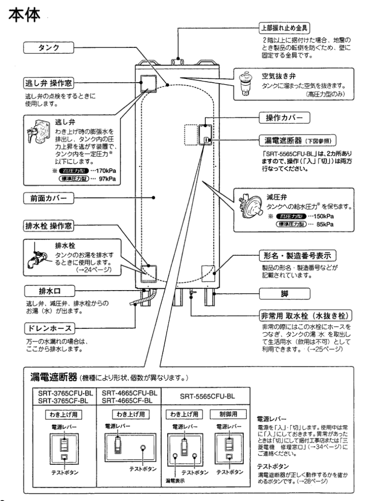 以下は、参考例です(三菱電気温水器ダイヤホットSRT-3765CFU-BL)