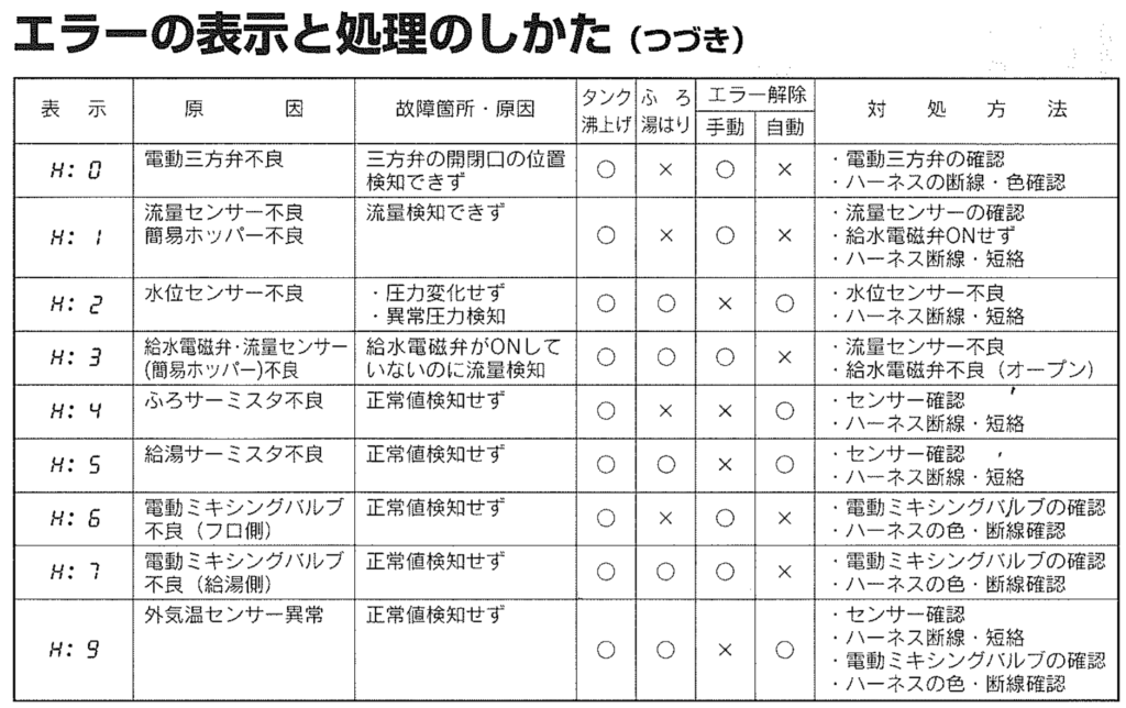 エラーH6は、主に フルオートタイプの電気温水器で発生するエラー です。